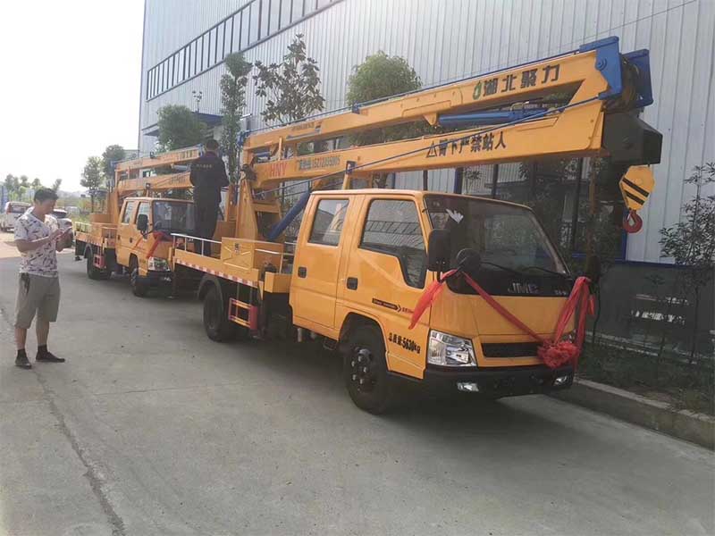 江鈴16米高空作業(yè)車配置參數(shù):江鈴順達(dá)新款雙排駕駛室,軸距3360mm,配備五十鈴108馬力正宗國五發(fā)動機(jī),5檔變速箱,江齒五檔變速箱,7.00R16原廠鋼絲胎.作業(yè)高度為14米-16米,液壓360 江鈴16米高空作業(yè)車三節(jié)折疊臂,折臂系列可選裝1噸吊鉤。單液壓舉升缸,帶雙向平衡閥,電控操作舉升臂,四支液壓油缸可調(diào)式支腿帶雙向液壓鎖(支腿操作為手動操作,可單獨)、大作業(yè)幅度7.2米、大起吊高度8米。