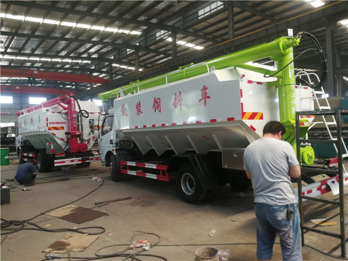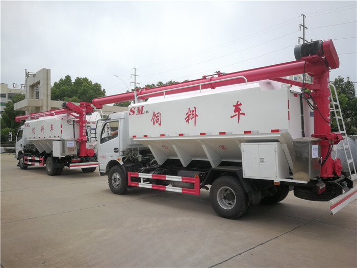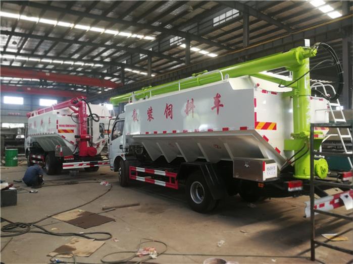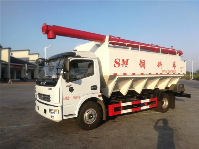 散裝飼料車就是能夠同時裝載運輸13種不同飼料,并能通過電機螺旋輸送系統(tǒng)實現(xiàn)向7.6m高的儲料塔中自動卸料的專用飼料運輸車。
