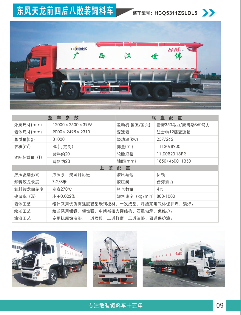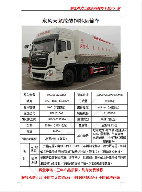 2.絞龍電機均采用國產(chǎn)優(yōu)質電機,在粉塵、雨林、腐蝕性消毒水、惡劣的行駛環(huán)境下,保證散裝飼料車的良好運行。